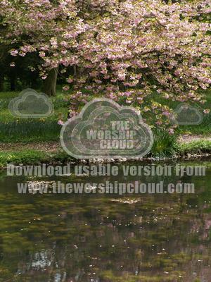 Tree blossom reflected in still water