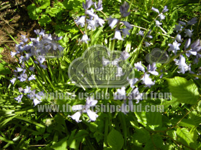 A photograph of a clump of Blue bells in a church garden by Audrey hogan