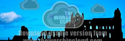 Whitby abbey in silhouette with blue background.
