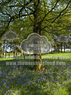 Shaded by a lovely tree a carpet of gorgeous bluebells
