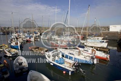 • Boats moored in Lynmouth Harbour North Devon Coast UK