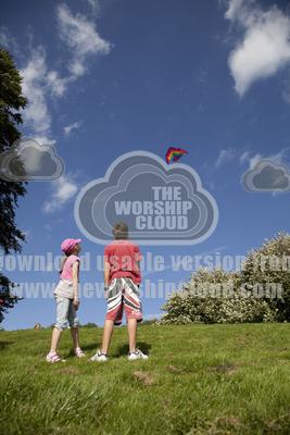 home | resources | boy and girl flying red kite in blue sky broadway tower uk