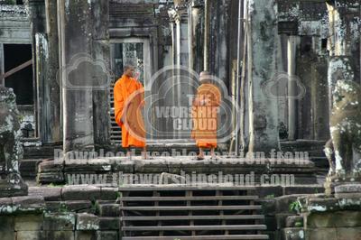 The ancient temple is still in use today. Bayon temple, Angkor Wat, Seam Reap, Cambodia.