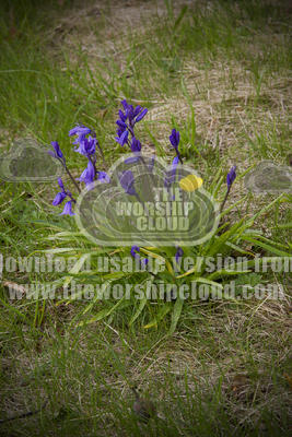 A splash of yellow surrounded by the vibrant blue of lovely Bluebells