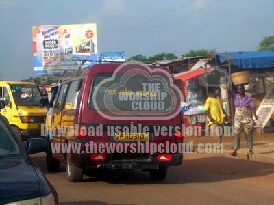Image of a Religious Slogan: 'By His Grace' inscribed on the rear of a vehicle in Ghana, 2007.