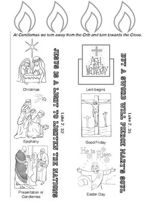Pictures representing the festivals of Christmas/Epiphany and those of Lent/Easter linked by scripture passages from Luke 2