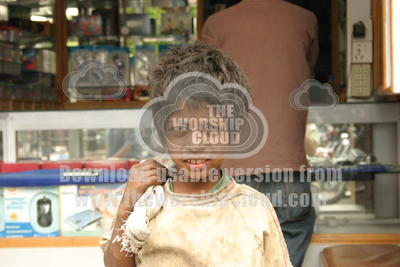 We stopped this child in the streets of Kathmandu, Nepal. He was not begging but putting scraps of cardboard fron the street into the sack. He was happy to pose formally for a few coins, about a weeks income for him. This is the first of two