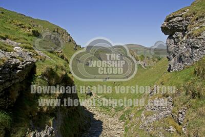 Dramatic view from Cave Dale to Peveril Castle and the Mam Tor Whin Hill ridge beyond