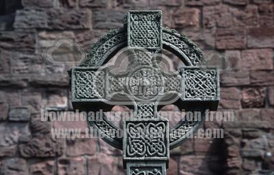 • St Martin's celtic cross outside Iona Abbey off south coast of I