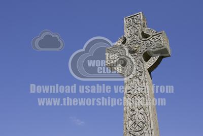 Celtic cross against deep blue sky Glencoe, near Fort William Scotland