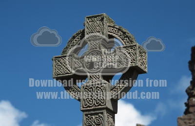 • CELTIC CROSS, LINDISFARNE PRIORY, HOLY ISLAND, UK
