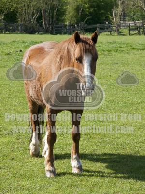 A lovely young chestnut horse waiting for some food