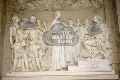 Christ before Pilate stone carvings, Le Calvare, Nr Pontchateuax Brittany, France