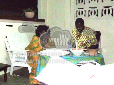 Leaders of a Bible Study at a Class Meeting of St Peter Methodist Church, New Achimota, Accra, Ghana, 2007, held on a veranda.