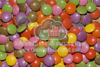 • Closeup of group of colourful circular smarties UK