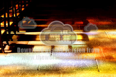 Light through stained glass shining on church flag floor