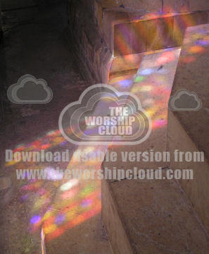 Sun through stained glass onto stone steps