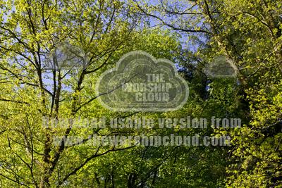 A mixed bunch of trees full of freshly opened leaves on a fine Spring day at the Ladybower reservoirs