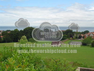 View from Lyndon Prep School across the playing field out towards the sea of Colwyn Bay, North Wales.