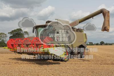 Combine harvester in a wheat field.