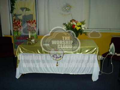 This photograph is of our church table dressed ready for a communion service just after I had prepared it. The banners and table cloth and frontal were made by myself. So I hope it blesses any one who sees it. The photograph was taken on a digital camera by myself. Audrey Hogan