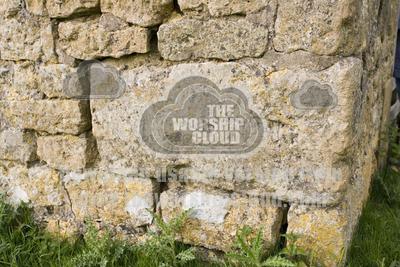 • Cormerstone set at base of old Cotswold stone cottage Mickleton