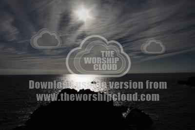 A view out to sea from the Cornish coastline, looking into the sun