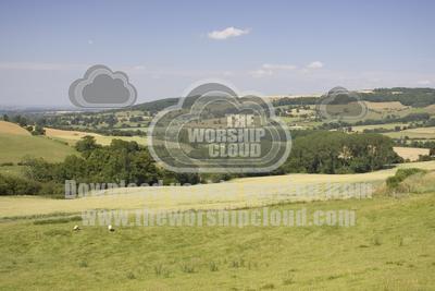 • Typical sheep farm at foot of Cotswold escarpment near Stratford