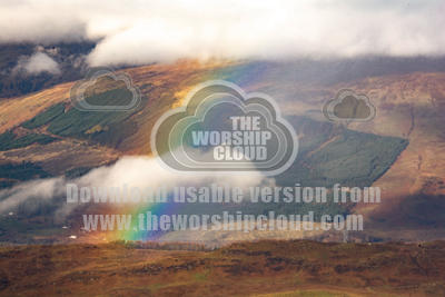 Rainbow forming in the mist on the hills of Scotland
