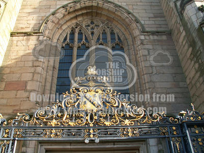 View of ornate iron gates outside Derby Cathedral