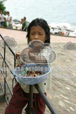 CAmbodian girl making a living selling necklaces and bracelets near Seam Reap