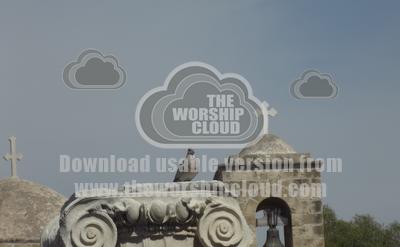 Photo of collared dove on column outside historic church in Cyprus