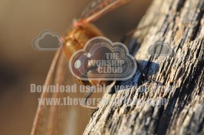Dragonfly resting in the sun on a log.