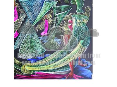 Created by Audrey Hogan some years ago and photo coppied on to computer.The design conveys diaphenous material combined with figures and creating an aetherial look.