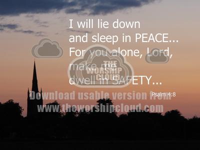 Evening sky and text from Psalm 4:8 Powerpoint image and picture for personal reflection / newssheet