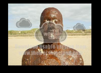 Head and sholders of a metal man on Crosby Beach.Photographed by Audrey Hogan on a digital camera.September 2008