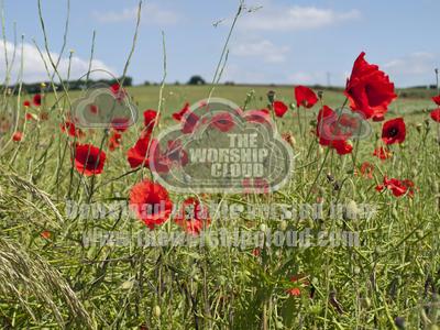 Close up of a field full of bright red poppies