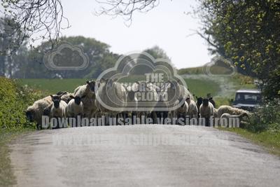 • Flock of Masham sheep and lambs being driven down country road