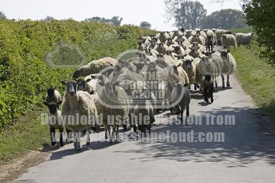 • Flock of Masham sheep and lambs being driven down country road