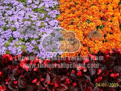 Flower bed close up, at Tatton Park Flower show in 2007. It had been very wet but the flowers here just exuded sunshine. Looks like a patch work quilt. Photo taken on digital camera by Audrey hogan.