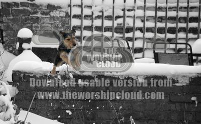 Black and white with highlighted dog jumping
