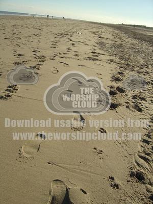 Footprints on beach at Skegness