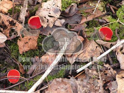 Scarlet, elf cup fungus growing on dead wood can be seen as an allegory of the Easter events - without the dead wood this beautiful fungus could not live and grow.