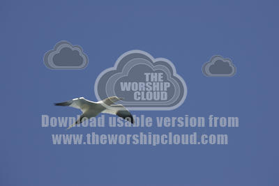Gannets soaring above Bass Rock