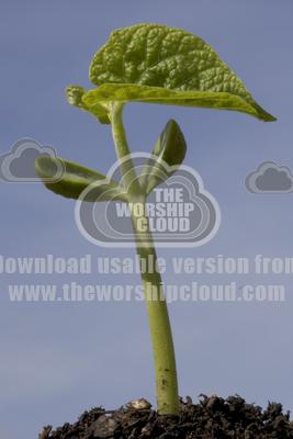 Phaseolus vulgaris showing first leaves emerging two cotyledons or seed leaves clearly visible