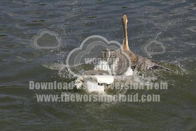 A goose was attacking a duck when another goose; different species, came to its defense and chased the offender away.