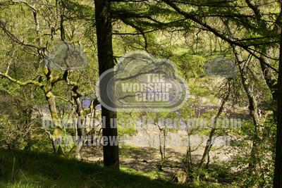 Below the dam the Derwent is still more of a trickle than a river seen here between snaking patterns of colourful trees