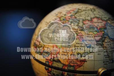 A globe with the Middle East facing camera. A light dot and the globe sits in darkness