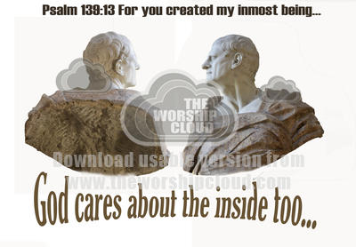 A sculpture, beautiful on one side, but rough and unfinished on the rear.