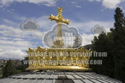 • Golden cross on dome of Basilica, Lourdes, France